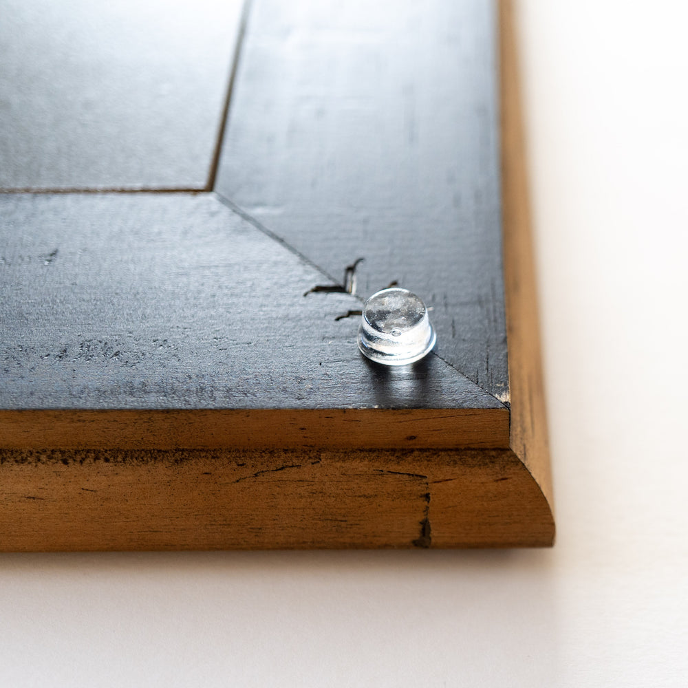 Help prevent pictures from leaning away from the wall by mounting these self-adhesive bumpers on the back bottom corners of the frame—they move the lower edge of the work slightly outward to reduce the angle of lean. Clear, supple material won't mar walls.
