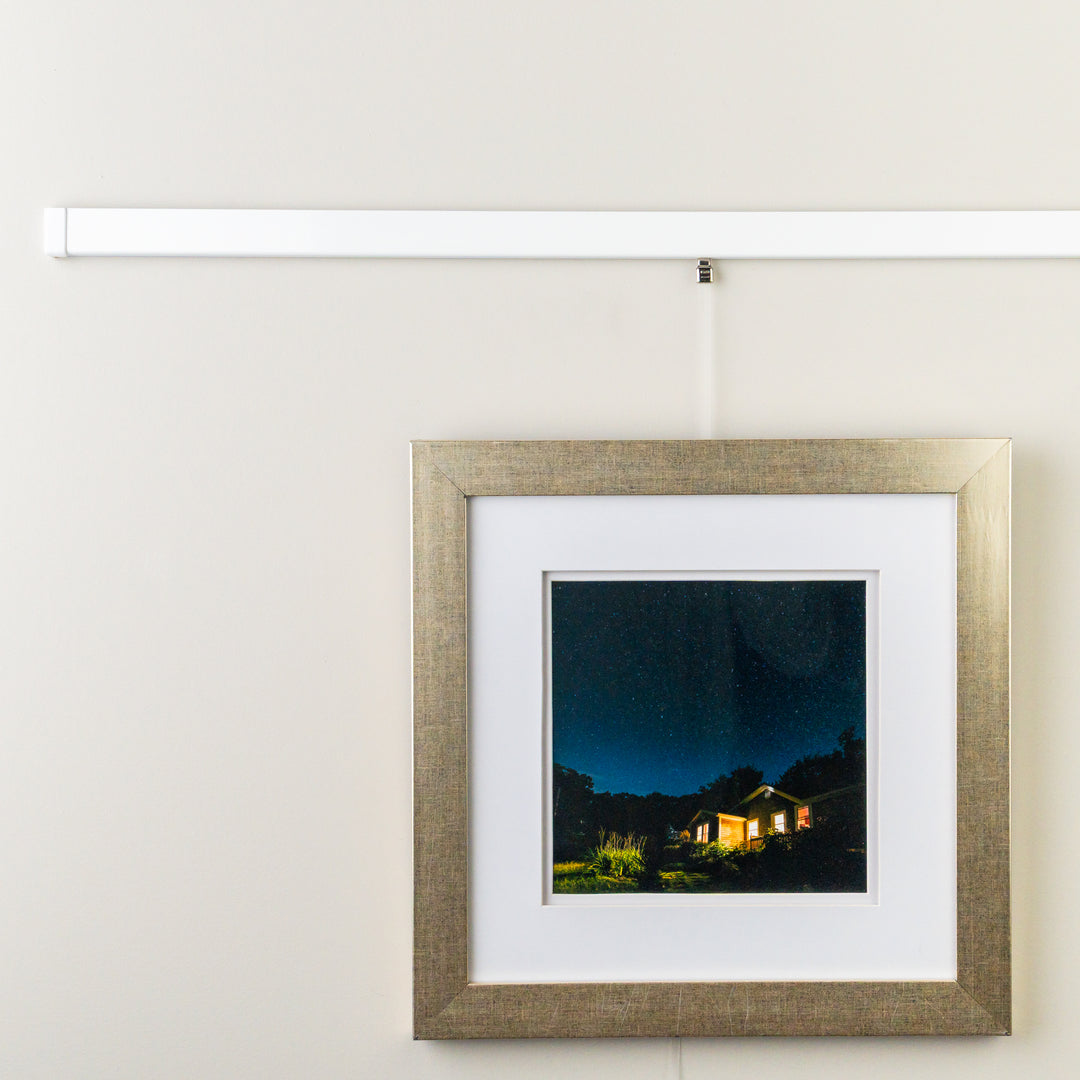 Being able to display my art using an art hanging system in my own home has been a game changer. On one wall I hang one or two finished pieces. On the other I hang works in progress. I find that living with a work in progress helps the progression. If a detail of a painting just isn’t sitting right with me in the studio, I’ll hang it in my home where I can look at it throughout the day; sometimes on the fifth walk-past I see what’s missing, and it clicks!