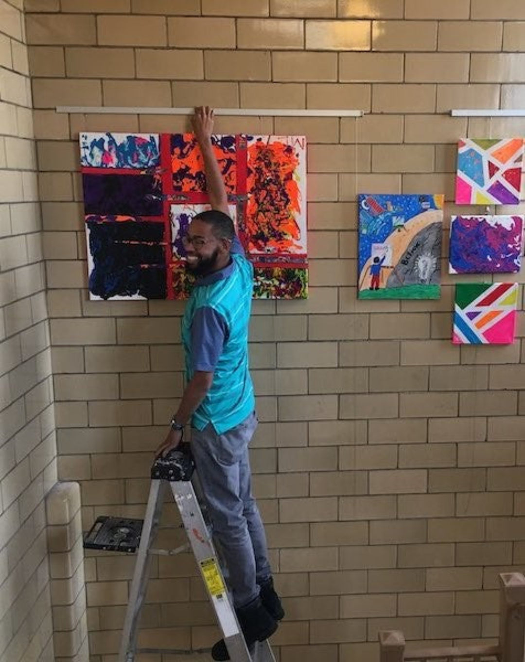 These insights flow directly into the envisioning of exhibitions, including the development of themes, and are a great entry point for involving the students in the curation process, and ultimately the art hanging itself.